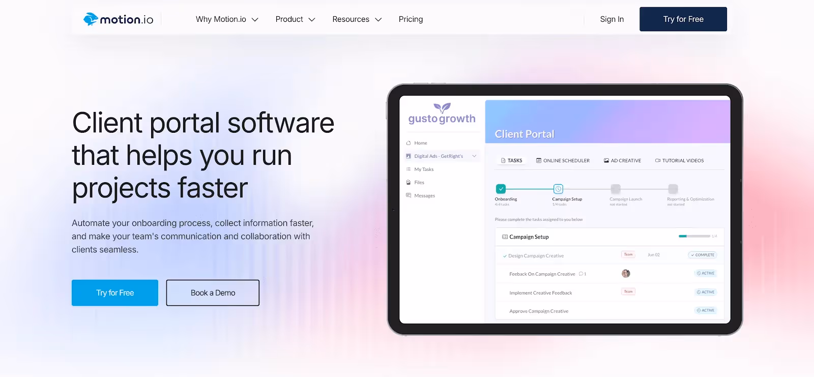 Motion.io gives you the workflows, visibility, and automation to take on more clients--without the chaos.