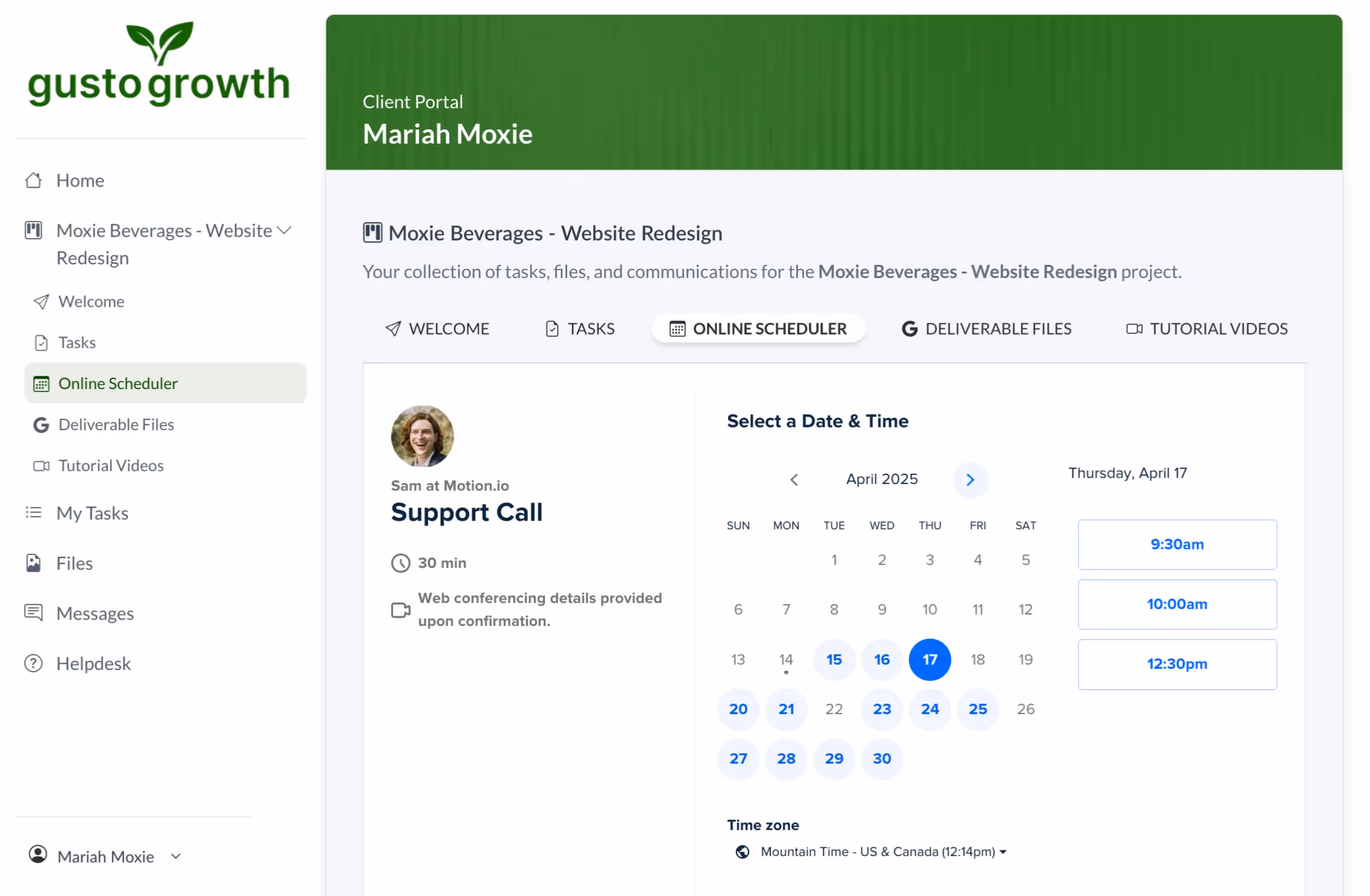 Now, clients can schedule meetings or view project timelines right from their portal.
