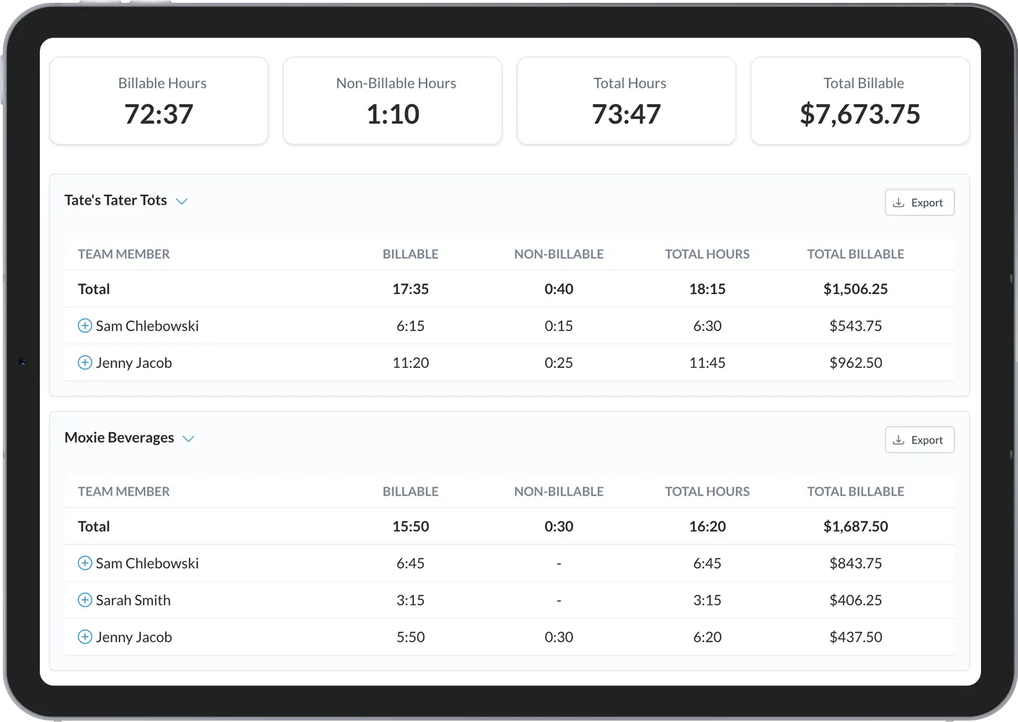 Filter, view, and export time tracking with ease
